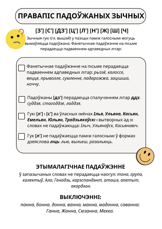 На занятках зможаце ўзнавіць веды пра падаўжэнне і падваенне ў спрадвечна беларускіх словах і словах іншамоўнага паходжання.